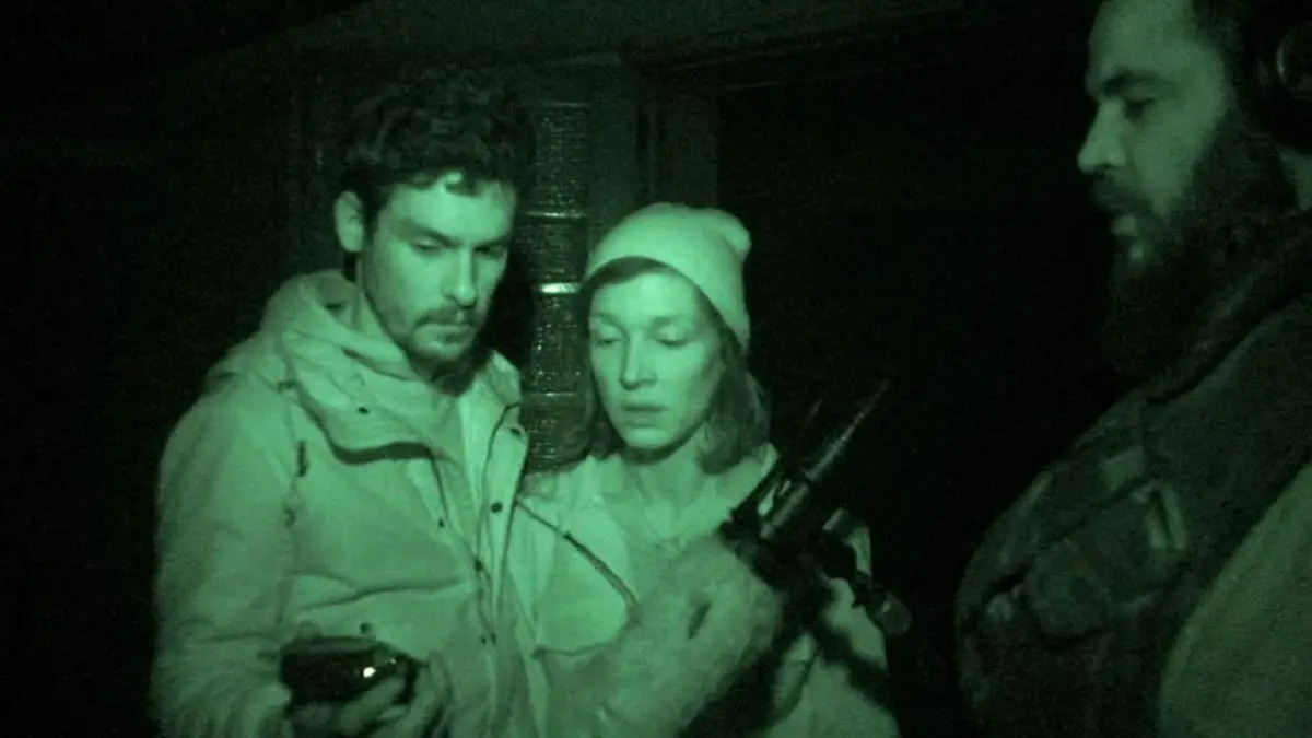 The movie makes extensive use of night-vision, with huge swathes of the action bathed in green, even in scenes where a flashlight would have provided sufficient lighting. Under the circumstances defined by the story, having the cameraperson use night vision is consistently believable. Further, this unusual lighting method often results in more than a few creepy visuals. Many viewers, though, may understandably be put off by the aesthetic choice. A more subtle weakness of relying heavily on night-vision is that this lighting method limits viewers to one character’s point of view. While the one character holding the camera is seeing everything in the enhanced clarity of night-vision, viewers are not privy to where the other characters are located and what they are doing—creating a subtle disconnect between the audience and characters.